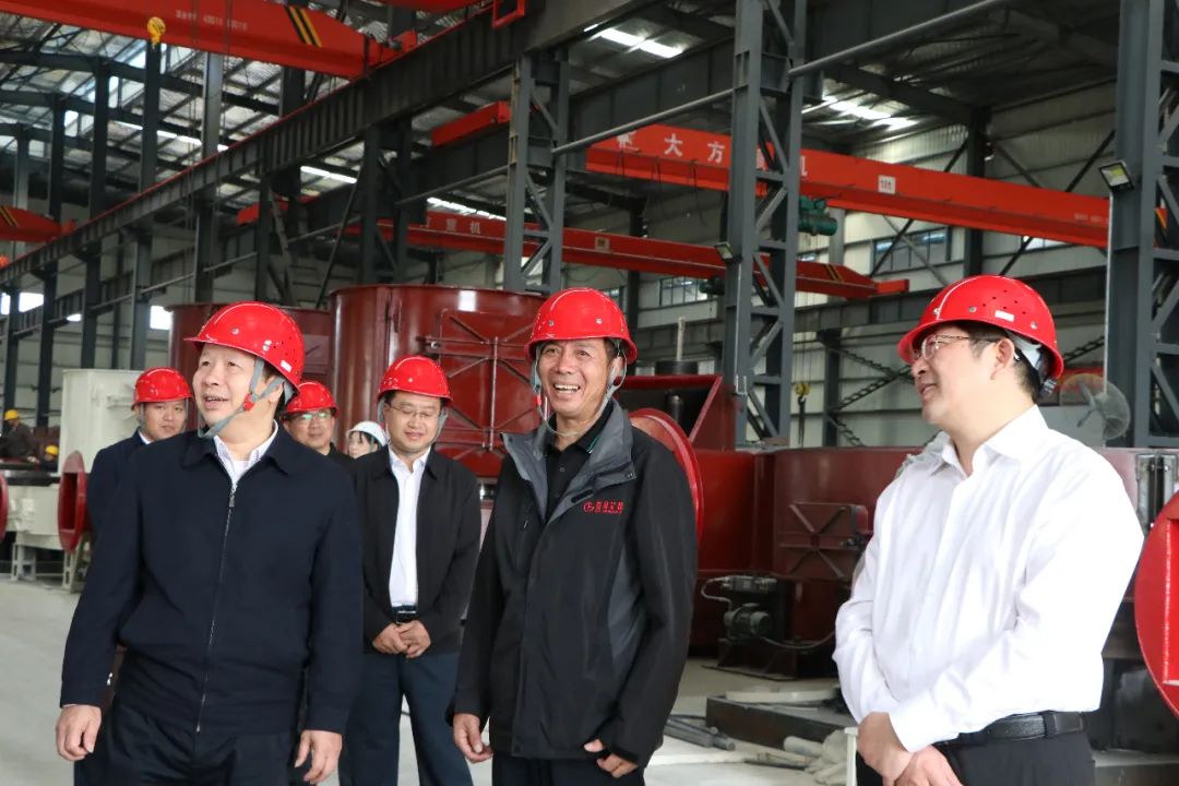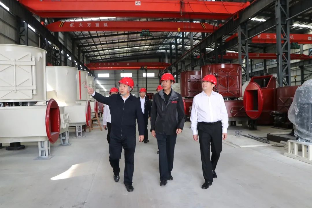 古書記等領導一行人在肖董的陪同下,走訪了公司生產現場,深入的了解桂礦的經營現狀。肖董向領導們匯報了公司的技術創新、發展戰略、市場需求趨勢等情況。并特別介紹了公司新研發的氫氧化鈣生產線與超細立磨等新產品。領導們對桂礦的發展給予了充分的肯定,并鼓勵加大創新力度,做好產品開發、推廣及應用工作,繼續保持住良好的發展勢頭。
